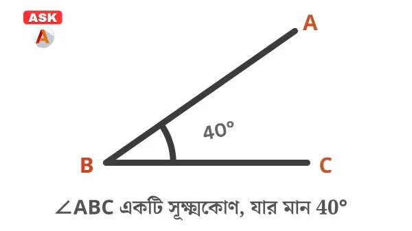 সূক্ষ্মকোণ : যে কোণের মান 90° এর চেয়ে কম, তাকে সূক্ষ্মকোণ বা Acute Angle বলে।